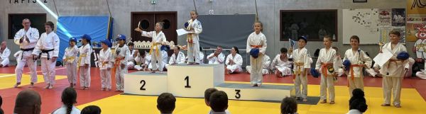Poussin : 1er RAT Matéo (393/420pts), 2ème CLIN Elias (383) et 3ème LARHZAL Balkis 364 récompensés avec un trophée, et une coupe à CORREIA Edilson-Ronaldo, SHIRAISHI Hanaé, GAND Oscar et PERNIN Maël.